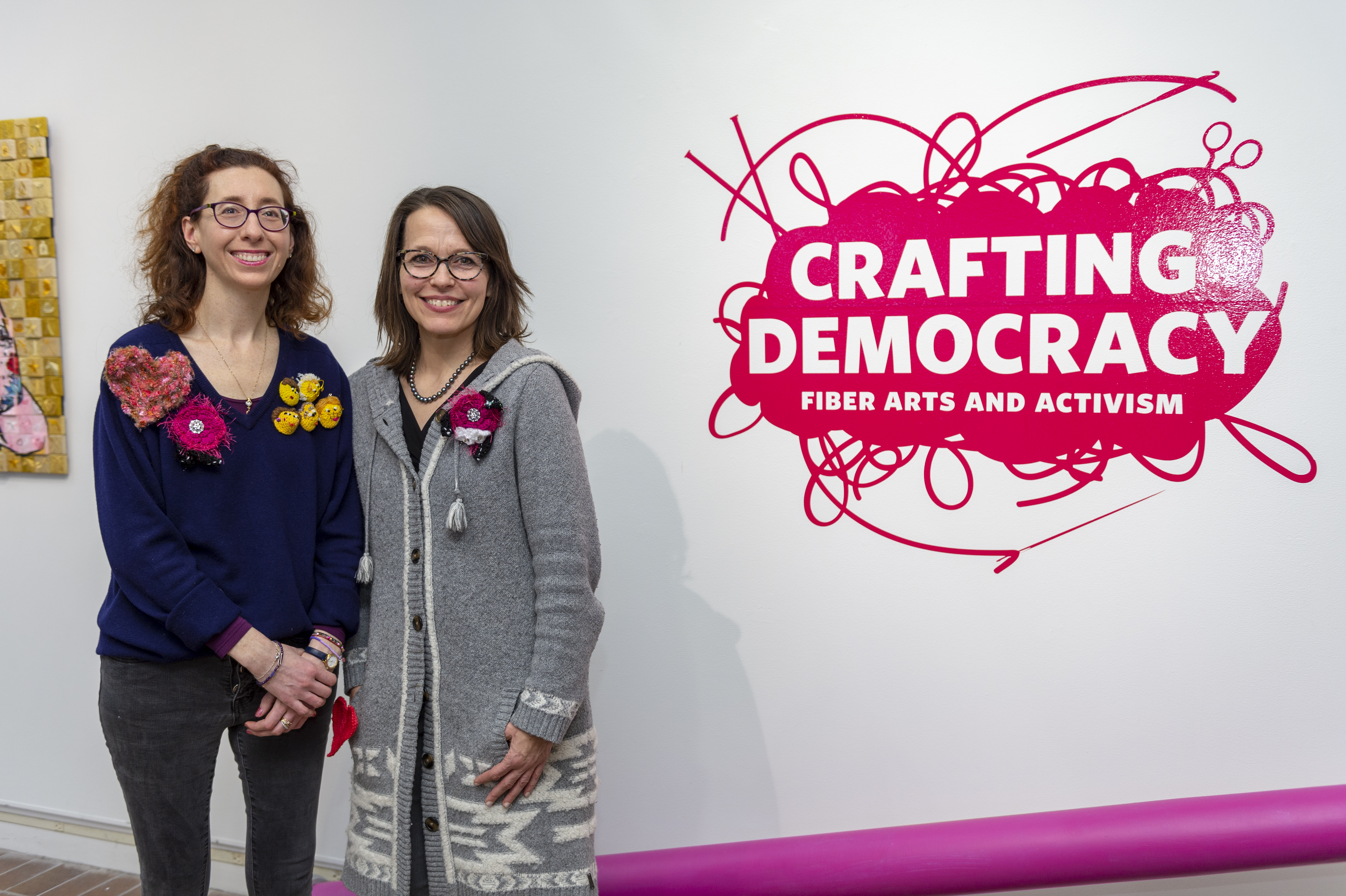 Five years ago, we organized the exhibition Crafting Democracy: Fiber Arts and Activism in Rochester, New York – home to Susan B. Anthony and Frederick Douglass. Works by the 30 artists, included in an eponymous catalogue (RIT Press, 2019, located nearby), explored how handwork probes the vulnerabilities of citizenship status, while also working toward positive social change. From 2019-2020, the exhibit traveled to four additional venues in the Northeast U.S., realizing opportunities for community, conversation, and critique. Crafting Democracy continued to travel and make its way to two sites (Richmond, VA and Geneva, NY) during the early days of the COVID-19 pandemic, further bearing witness to the ways in which expressions of democracy can persevere and, also, inspire.