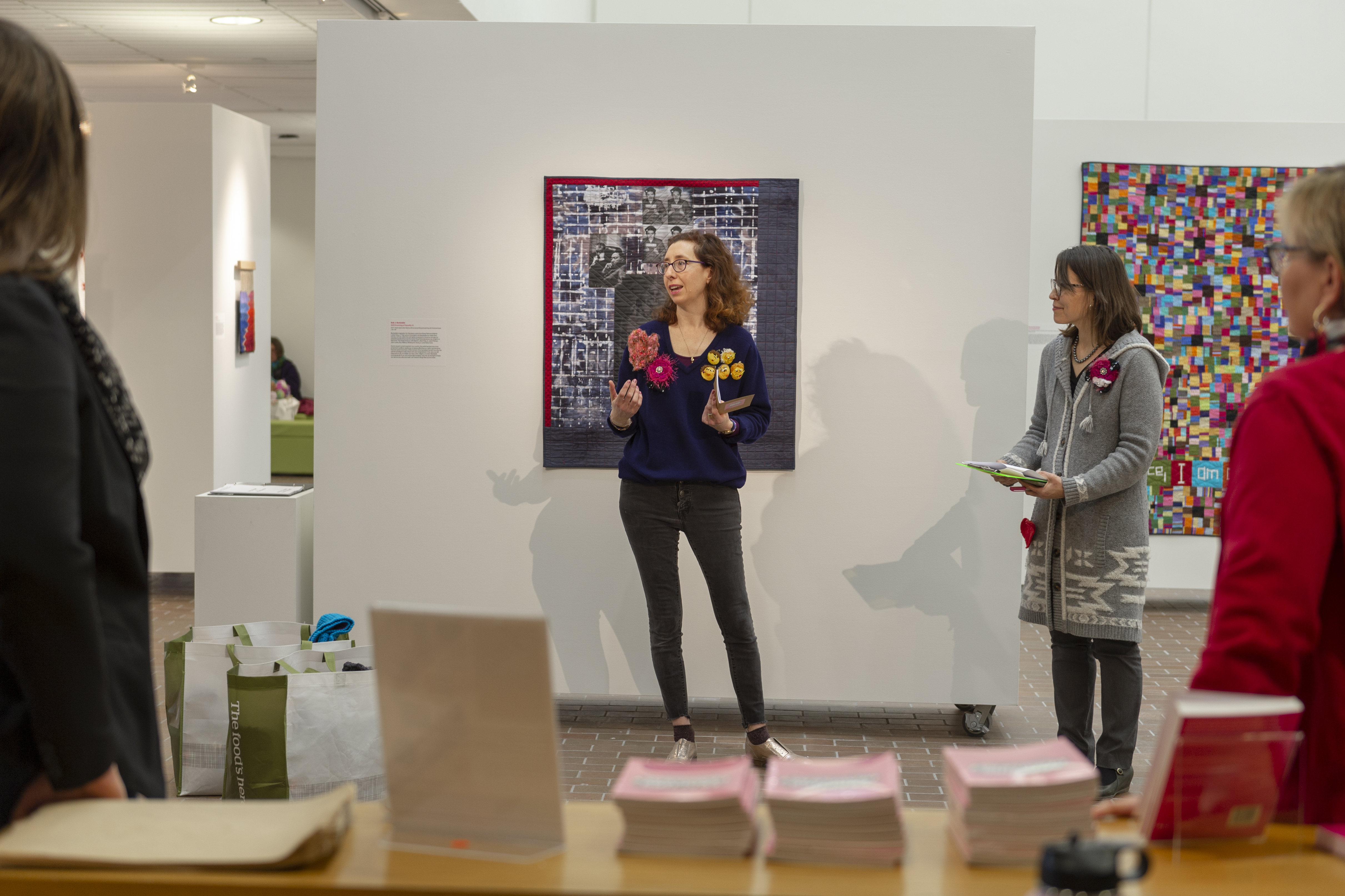 For the next iteration, at RIT, the show “Co-Crafting Democracy: Fiber Arts and Activism” will be unveiled on November 13, 2024, one week after the U.S. presidential election, at University Gallery on the RIT campus. In a unique twist, exhibition participants will be creating work prior to the 2024 election, but exhibition attendees will be viewing the work for the first time after the election.
